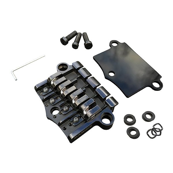 4-string, top mounting 5 hole mo unt Full Contact bass bridge. Milled aluminum construction.