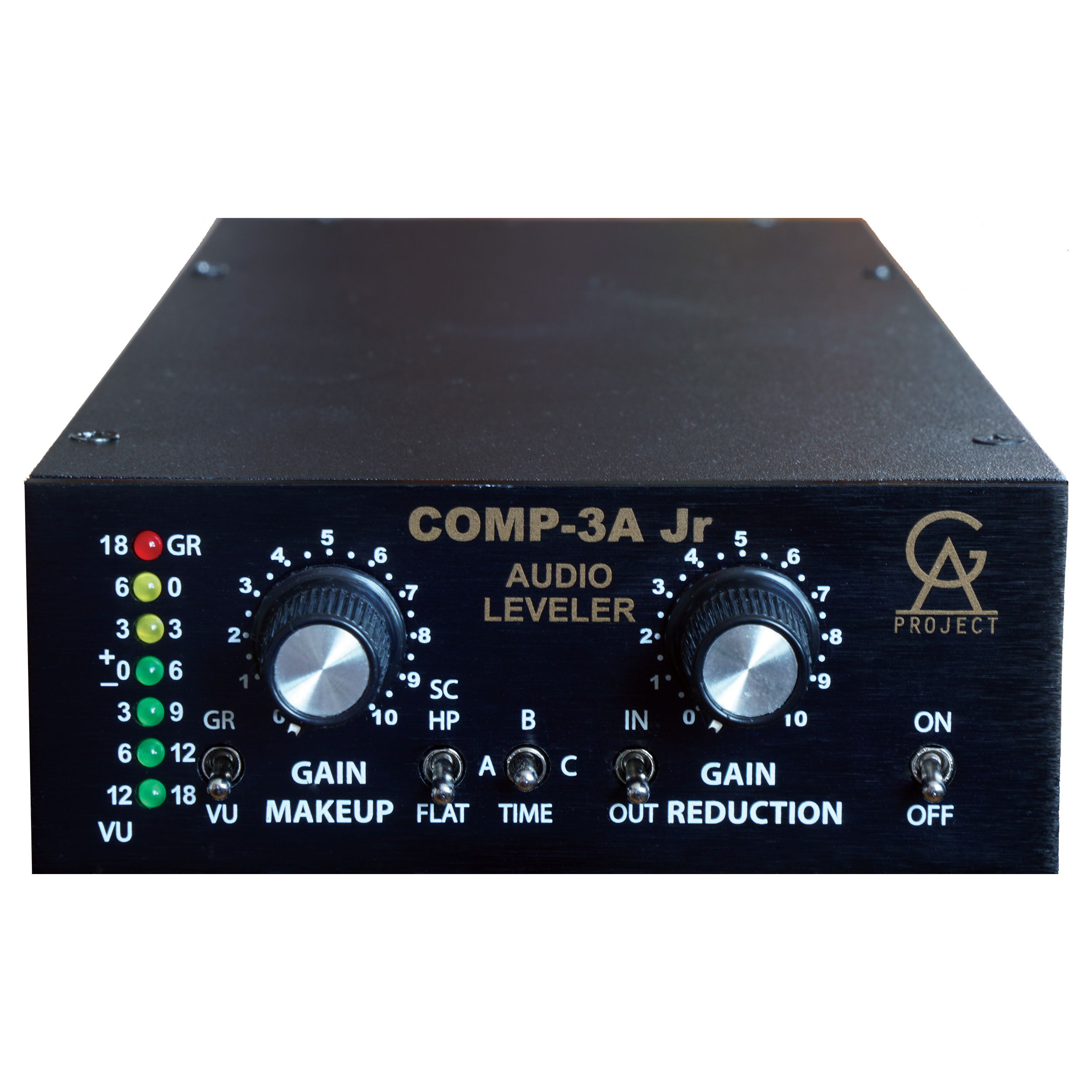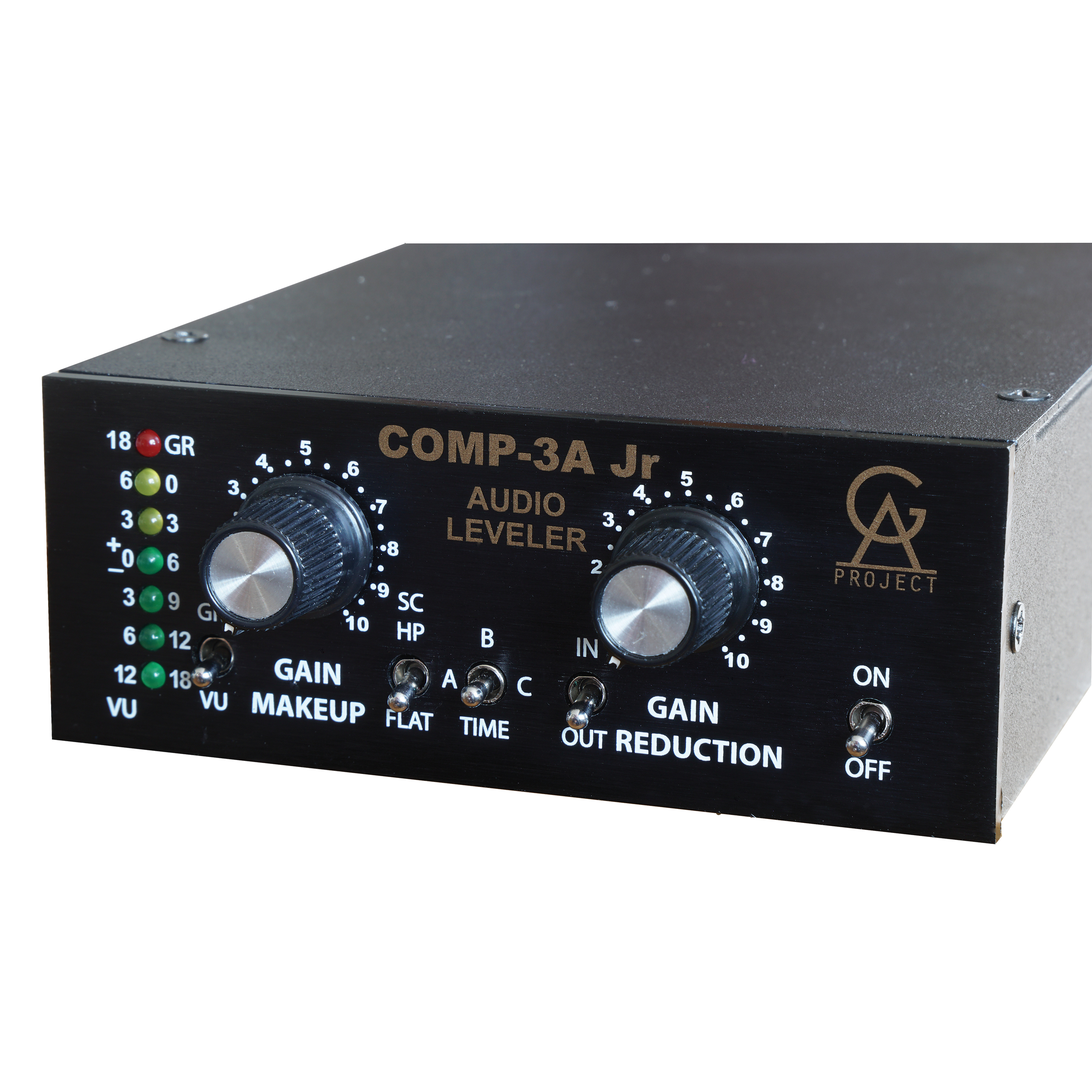 The COMP-3A Jr is a one channel vintage style Compressor / Leveler. The signal path uses only discrete components like resistors, capacitors, diodes and transistors. The input and output is transformer balanced, using two different transformers, each one optimized for its purpose. This is the way audio components were built before integrated circuits became available.