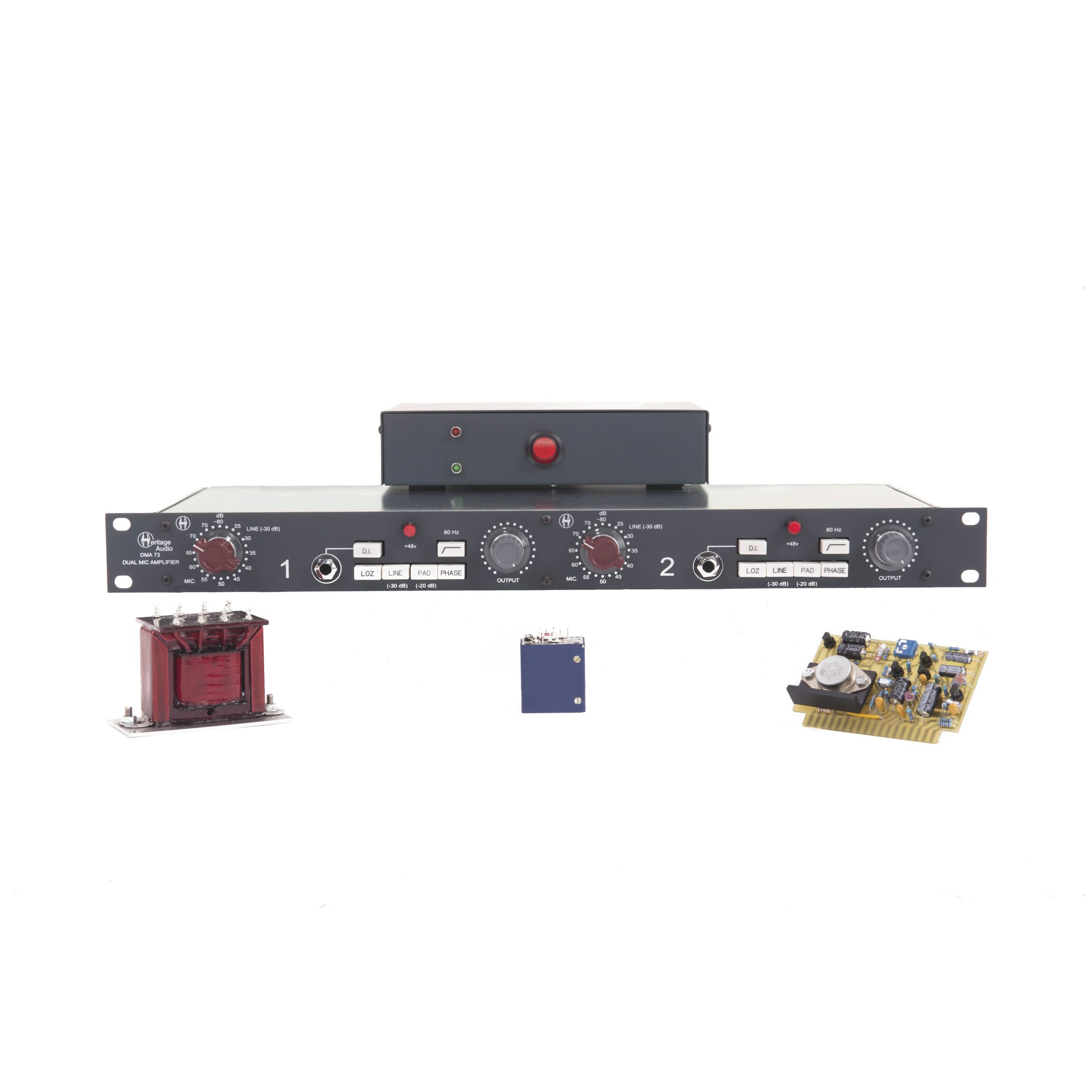 The Heritage Audio DMA-73 is a dual-channel mic pre with a sound and circuitry almost identical to that of the legendary Neve 1073. A name found in almost every major recording facility, Rupert Neve carved the way for high-end audio components and his classic 70s modules are still highly sought after today. The Heritage Audio DMA-1073 lets you bring this legendary sound home to your own studio without the cost and time of tracking down the original. Two XLR mic and line inputs on the rear and two 1/4" TRS inputs on the front of the DMA-73 will handle any source you can think of. Combine that with outstanding Class A preamps at up to 80dB of gain for mics and 50dB for line signals, and you've got pristine, legendary sound quality for today's modern home or project studio.