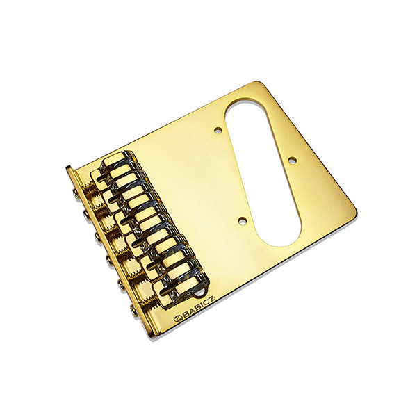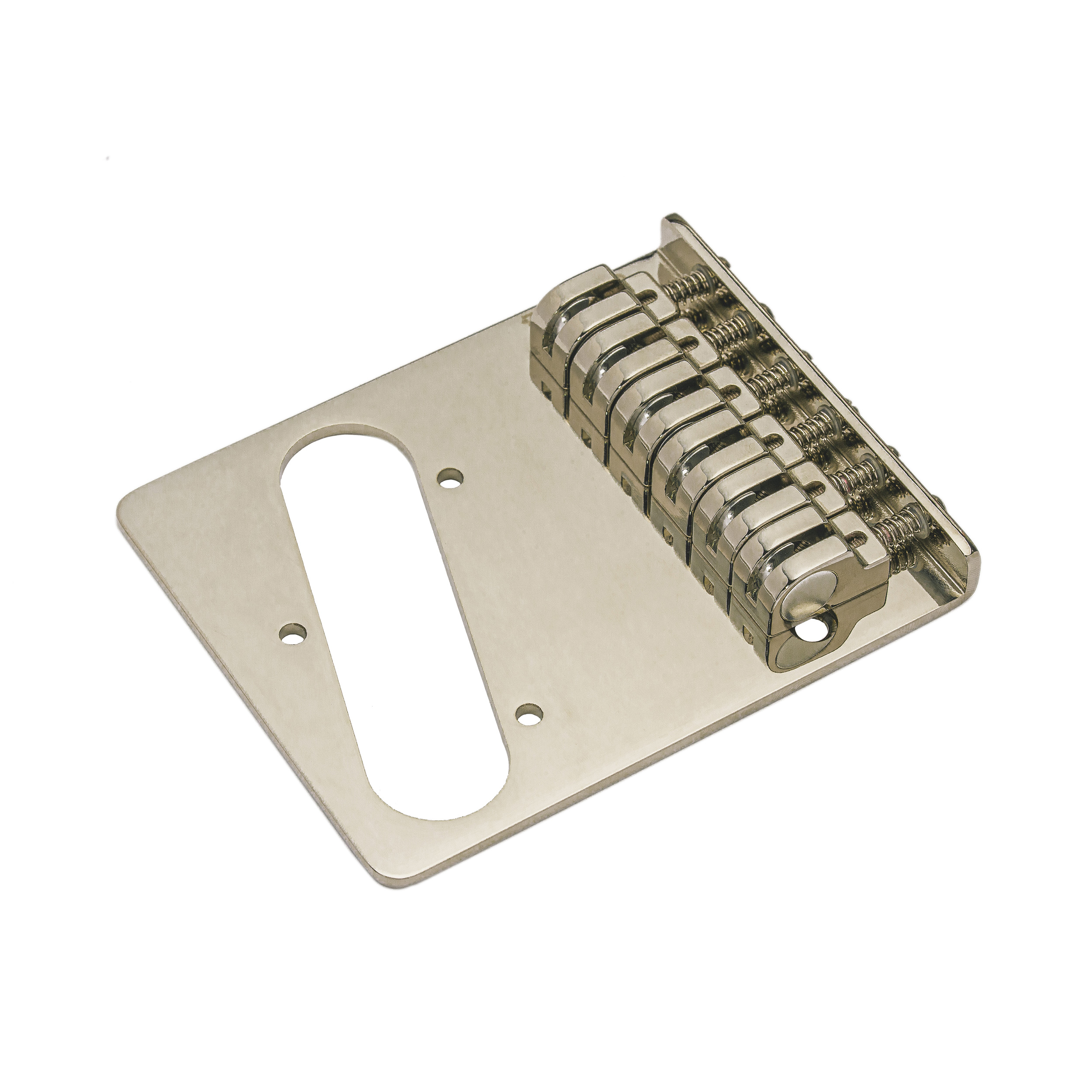 String through the body, 4 hole mount, Tele-style single-coil bridge. Includes bridge, mounting screws, instructions, and 1.5mm adjustment wrench. Weight: 6.4 oz.