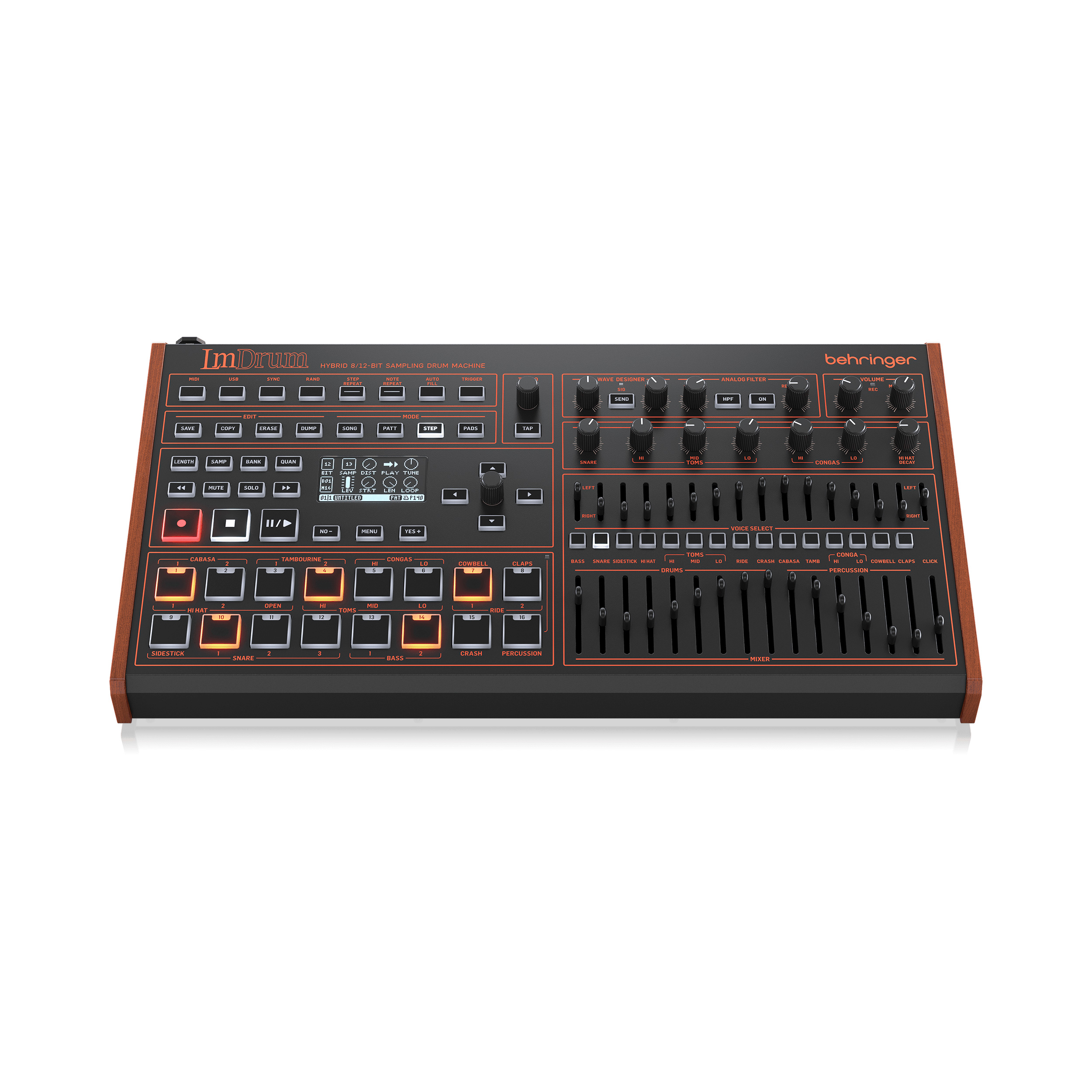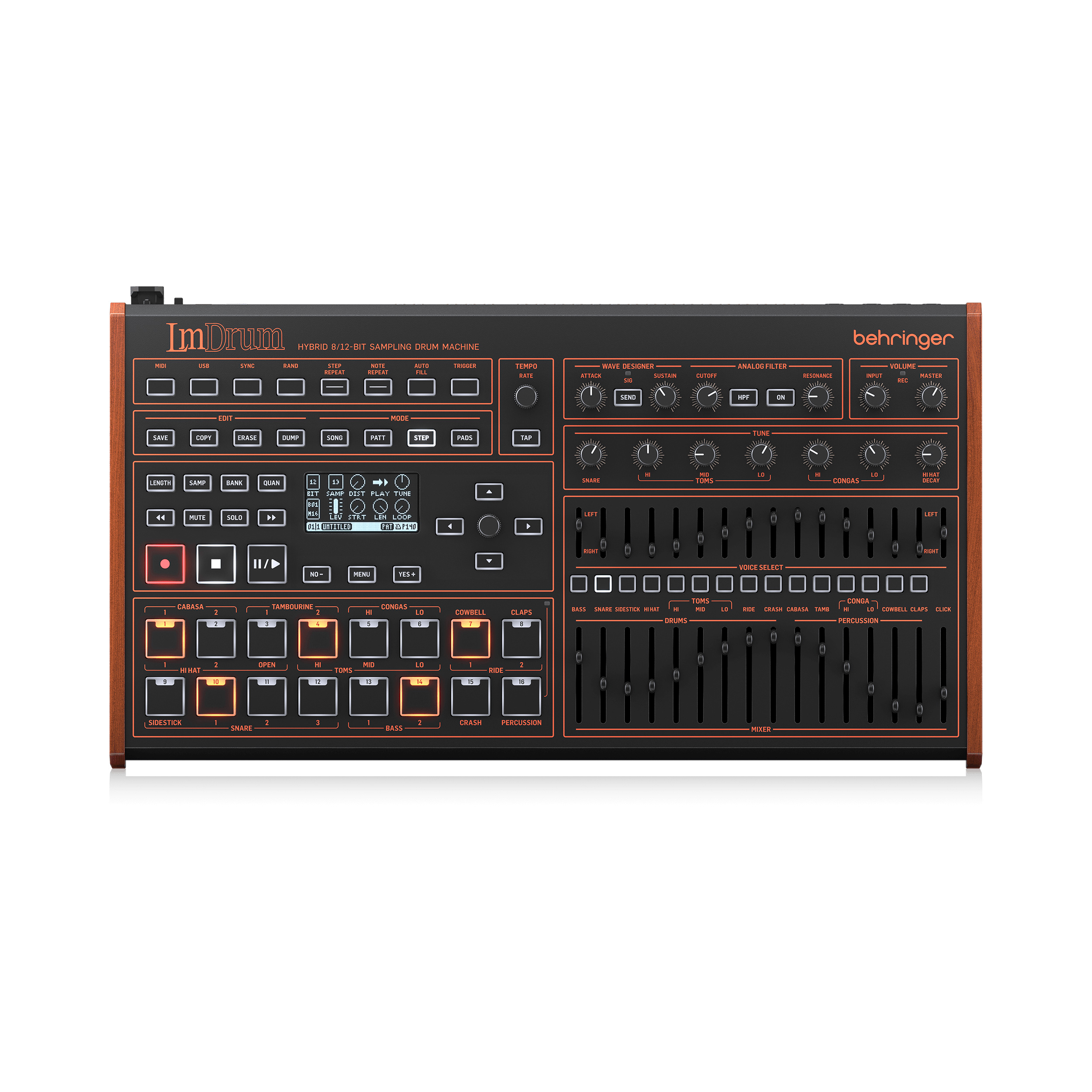 If you are looking for a drum machine that can recreate the classic sound of the 80’s, look no further than the Behringer LM DRUM. This amazing drum machine features an authentic 8/12-bit sampling sound engine that captures the essence of a hundred legendary 80’s drum sounds including those designed by Roger Linn such as the LM1*, LM2*, LM9000* and more. You can even record and store your own samples using the integrated line input.