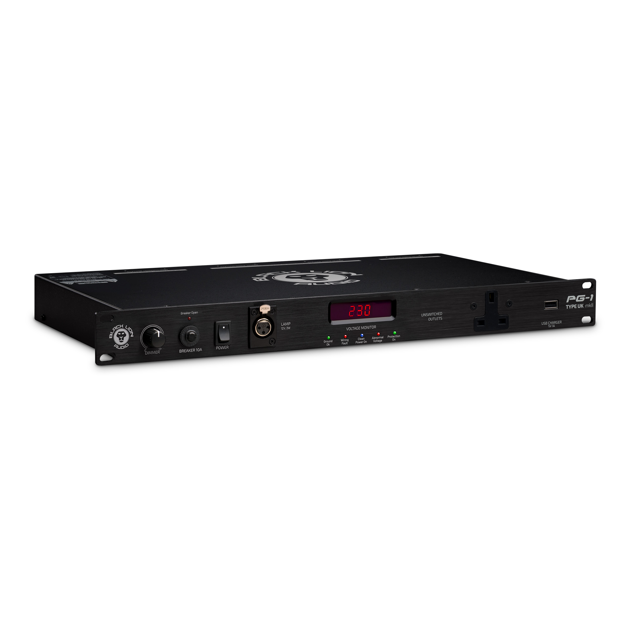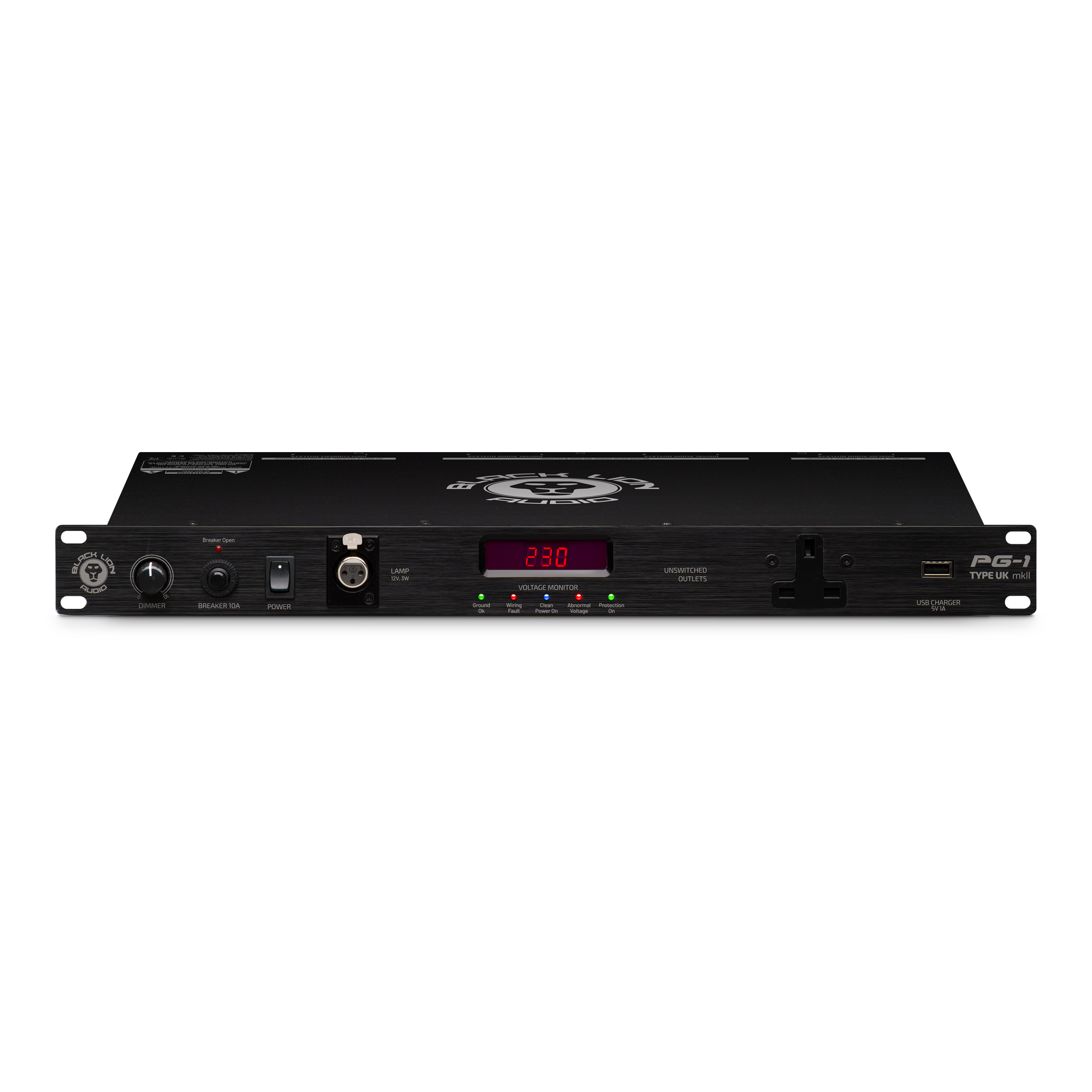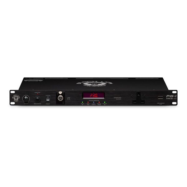 The PG-1 Type UK mkII features a bank of eight switched, filtered and surge protected outlets on the back panel — combined into three groups (Digital Audio, Analog Audio, and High Current.) The High Current outlets are time delayed, always ensuring that your speakers and power amplifiers are the last to turn on, and the first to turn off — this prevents the dreaded “pop” that can occur if speakers receive power at the same time as your sound sources. The PG-1 Type UK mkII also features one filtered convenience outlet, a USB port for device charging, and an XLR lamp connection on the front panel.