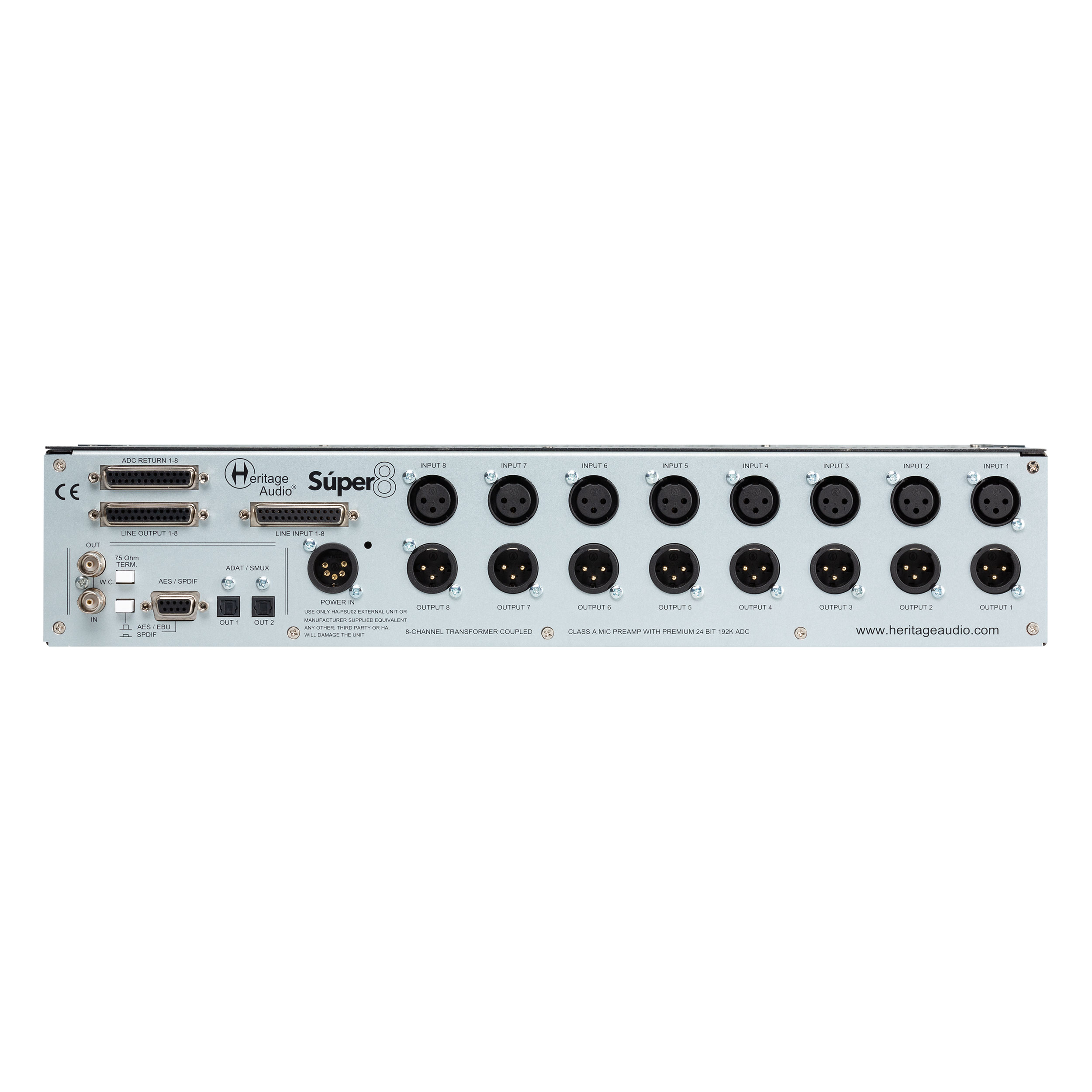 We decided to meet the demands of many musicians, producers and engineers and offer and all-in-one package with the SUPER 8 to get eight high quality signals recorded into your DAW. For the first time we are introducing a package with 8 of our famous '73 style preamps all in just one 2 rack space unit. So this piece is stuffed with all the goodies you'd expect including exclusively designed Carnhill transformers on the Inputs and Outputs and Tantalum and Styroflex capacitors to make sure you get all the juice, vibe and feel from that golden era all while dishing out a very generous 80dB of gain.