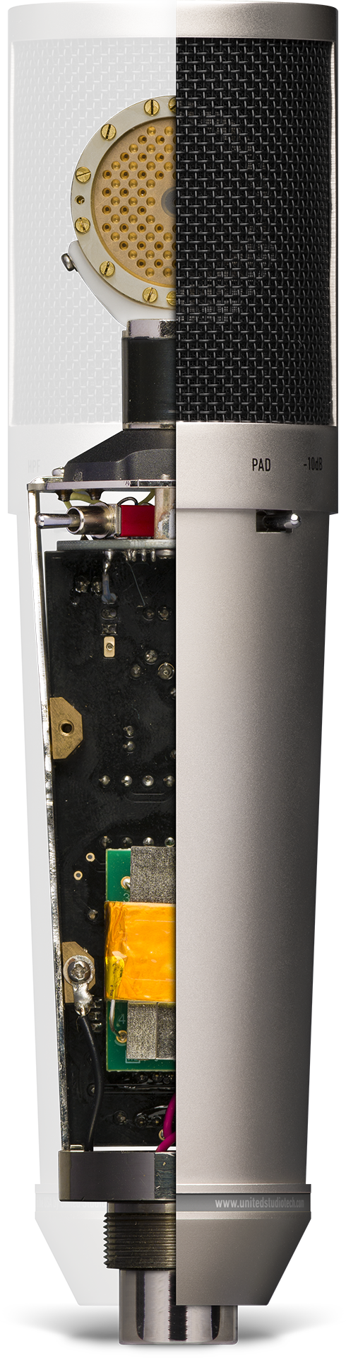 United looked at many iterations of the original German output transformer used in this type of microphone, drawing particular inspiration from some of the older, larger frame designs. Knowing that size can sometimes be a limiting factor, United developed their own custom-wound transformer which has nearly four times the metal mass found in any “87-style” microphone. This ensures that there are no bottlenecks or weak links in the design, and that nothing is lost in translation as the signal is passed out of the microphone and down long cable runs. The transformer sounds open, with high headroom, and a clear, three dimensional sound — and will never impede low frequencies.