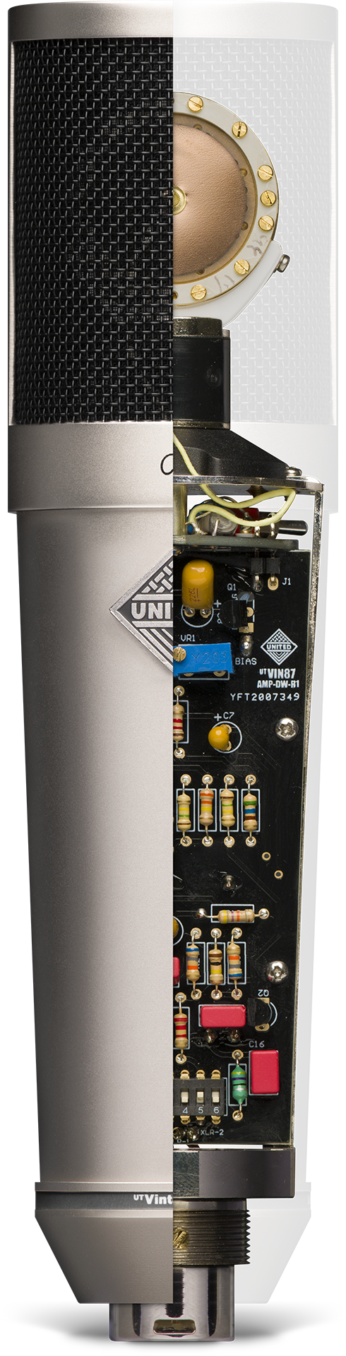 The UT Vintage87 features United’s own large-core, custom-wound, US-made output transformer, our own custom made 24k gold sputtered dual diaphragm/dual backplate K87-style capsule, and a whole assortment of hand-selected, premium components such as polystyrene, tantalum, multilayer ceramic, and WIMA film capacitors, metal and carbon film resistors, and hand-selected transistors.